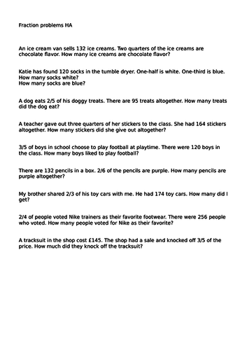 Fraction Word Problems Practice Questions - Fraction Word Problems